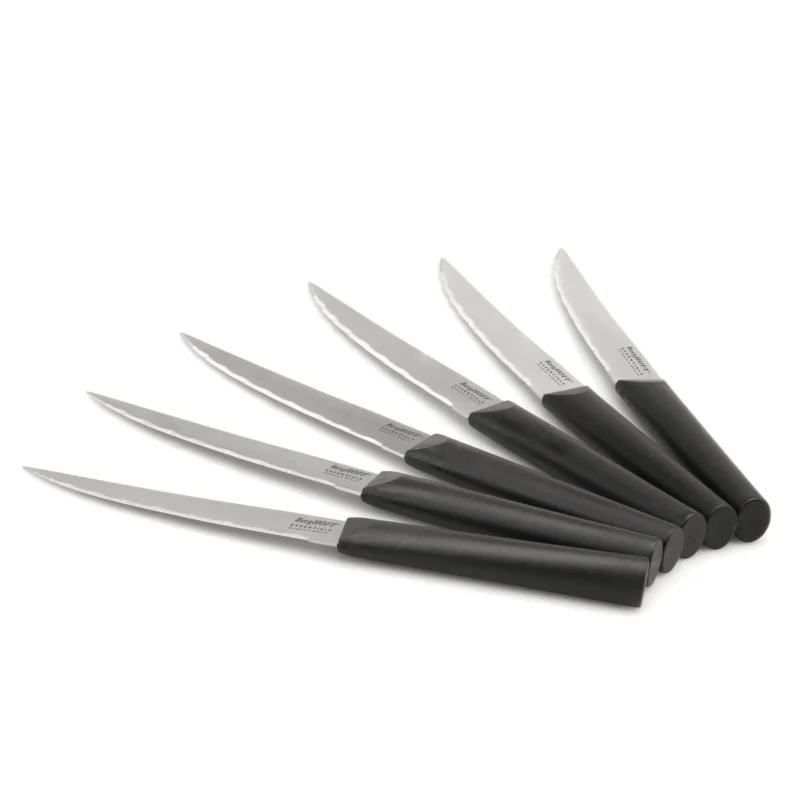 This 3-piece set includes a serrated utility knife, chef's knife and vegetable knife with zester, the perfect starter knife set in your kitchen! The all-rounder chef's knife is for slicing and dicing, the serrated utility knife cleanly cuts foods with a hard exterior and soft interior, and with the vegetable knife with zester you chop, slice and dice the ingredients in no time.