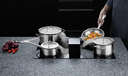 If you’re looking for a cookware set that allows you to apply a wide variety of cooking techniques, this 7-piece cookware set, made from high-quality 18/10 stainless steel, is the perfect fit. With the covered saucepan (16 cm), covered casserole (20 cm), covered stockpot (24 cm) and frying pan (24 cm), you’ll easily prepare lots of different dishes on any kind of stovetop, including induction. The cookware’s base ensures a fast and even heat distribution so there are no hot spots and the stay-cool handles offer a safe and comfortable grip. Add to this the clear glass lid with integrated steam vent, and you’re sure to get a complete set that will be part of your cooking adventures for years to come.