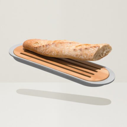 Bamboo baguette cutting board with crumb tray