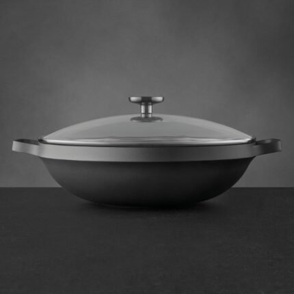 Become a real wok star with this double handed Chinese wok. It’s ideal for preparing various kinds of wok recipes and stir frying. The added bonus is that you need almost no oil thanks to the high-quality non-stick finish, making this wok a perfect tool for healthy cooking. It comes with a glass lid that lets you keep an eye on your food without losing any heat.