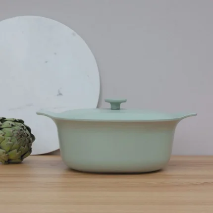 With its oval shape, the Ron cast iron casserole is perfect for pot roasting. Take your time to slow-cook a piece of beef or lamb, add your favourite vegetables and herbs and enjoy a savoury meal! From the stovetop, to the oven and then to the table, this mint green casserole is suitable for all heat sources and keeps your food warm for a longer period of time. It’s both easy to use and easy to clean.