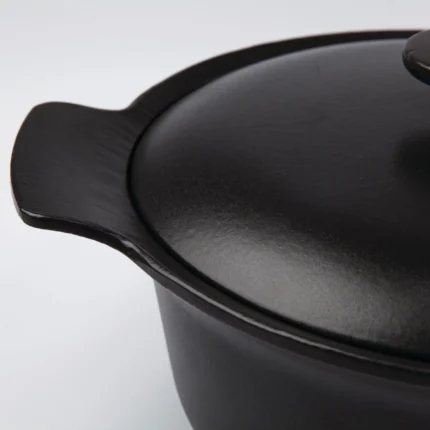 Succulent meat that falls right off the bone and melts in your mouth? No problem with this black cast iron casserole! Use it on any hob or in the oven and then take it to the table to keep your food warm longer. Thanks to its minimalist black exterior this casserole immediately adds a classy touch to your dinner table. The wide handles ensure a safe grip, even when you’re wearing oven mitts or using potholders.