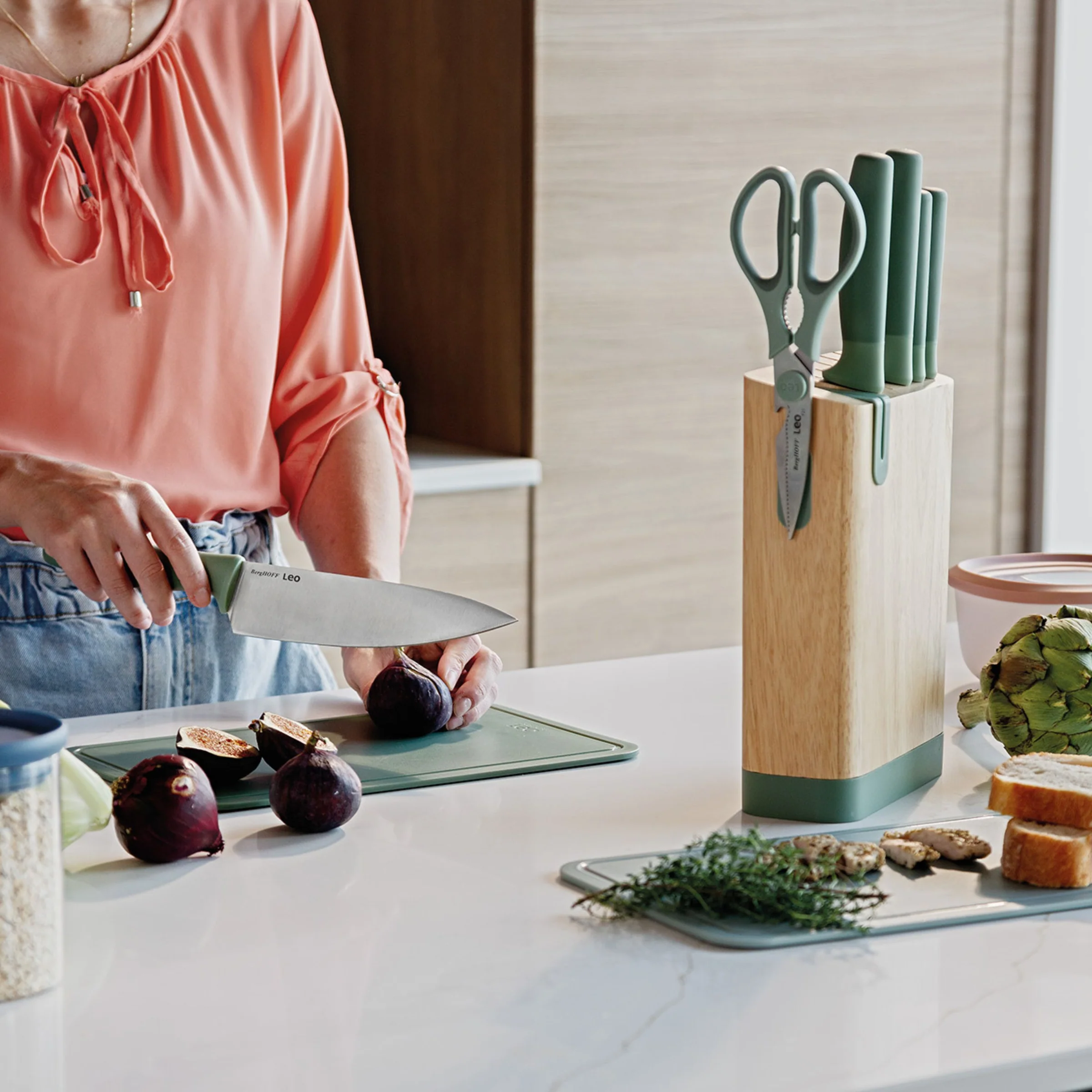 This 3-piece set includes a paring knife, santoku knife and chef’s knife, the perfect starter knife set in your kitchen! The allrounder chef’s knife and the Japanese-style santoku knife is perfect for slicing and dicing, and the paring knife tackles all your small-scale cutting jobs.