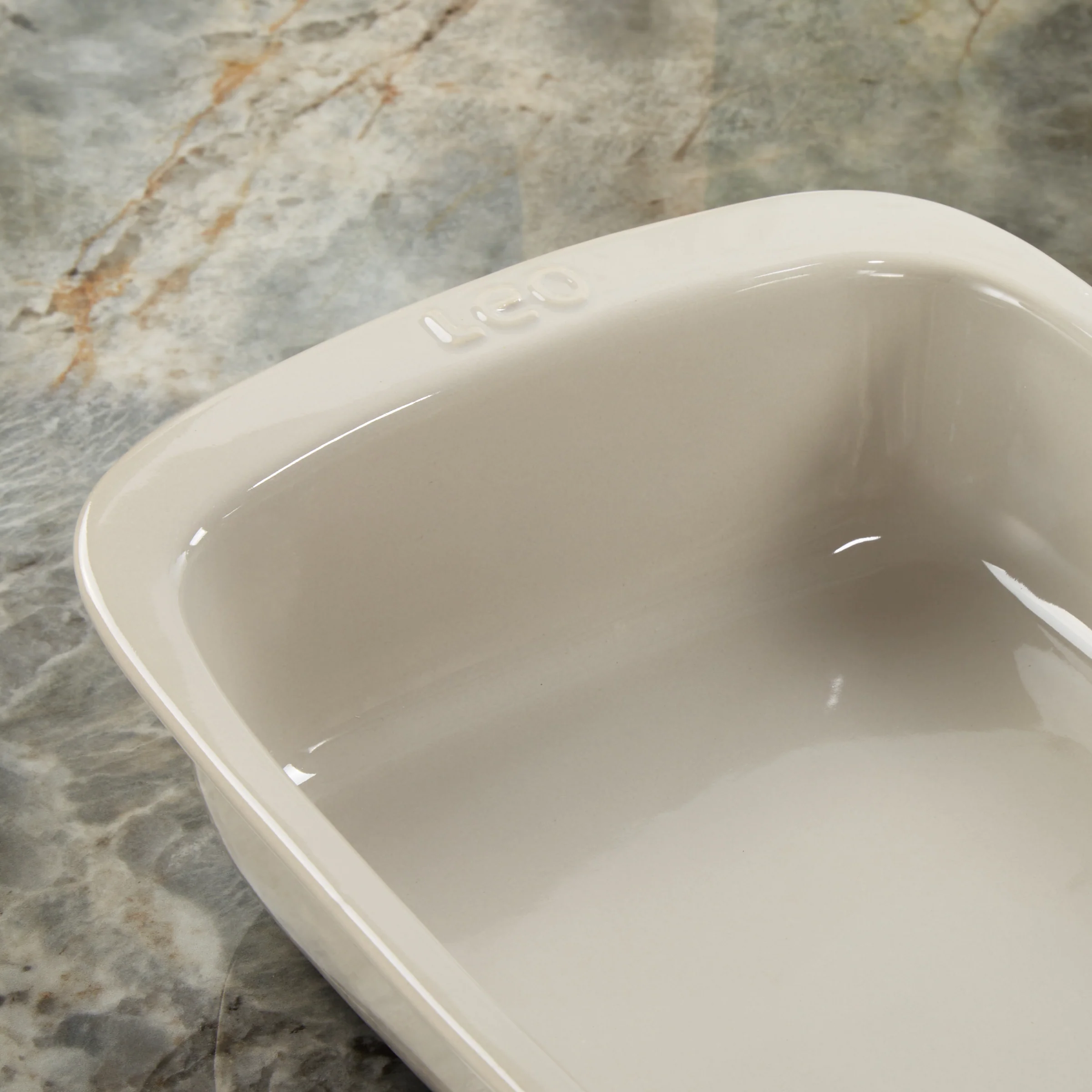Ranging from eye-catching entrees to delicious desserts, with this rectangular baking dish you’re set for a wide variety of recipes. The high-quality stoneware guarantees an even heat distribution for that perfectly browned result and the convenient handles provide a good grip for safe oven-to-table serving. Add to this the enamel coating that ensures an easy food release as well as a simple clean-up and you’ve got yourself a first-rate baking dish!