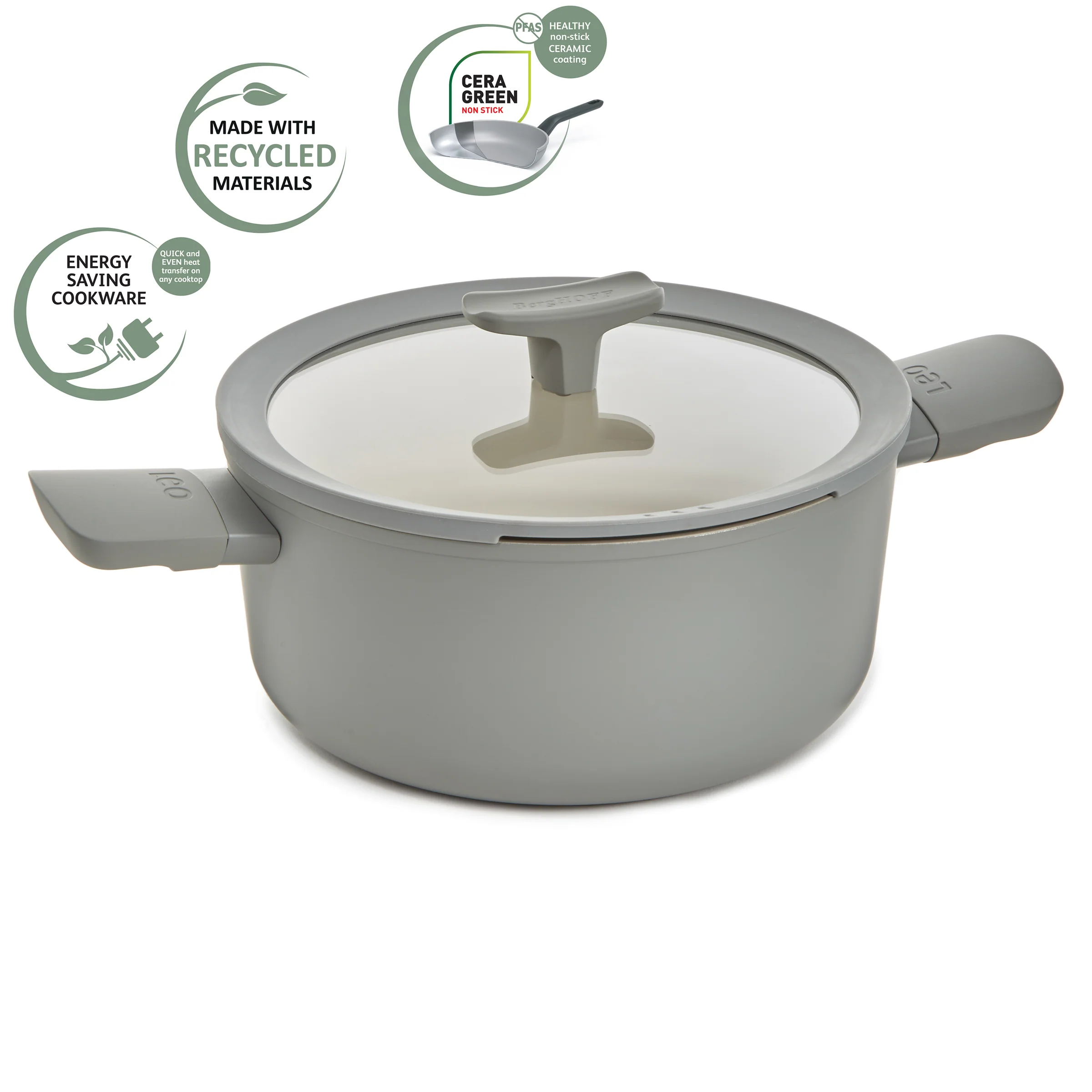 | Unique features | Clear glass cover with integrated air duct and straining function Special knob with spoon rest function Made with recycled aluminium Healthy CeraGreen ceramic non-stick coating (PFAS-free) Full disk base that conducts heat fast and evenly for energy-efficient cooking Suitable for all cooktops including induction and downdraft exhaust systems Ovenproof up to 180°C / 356°F |