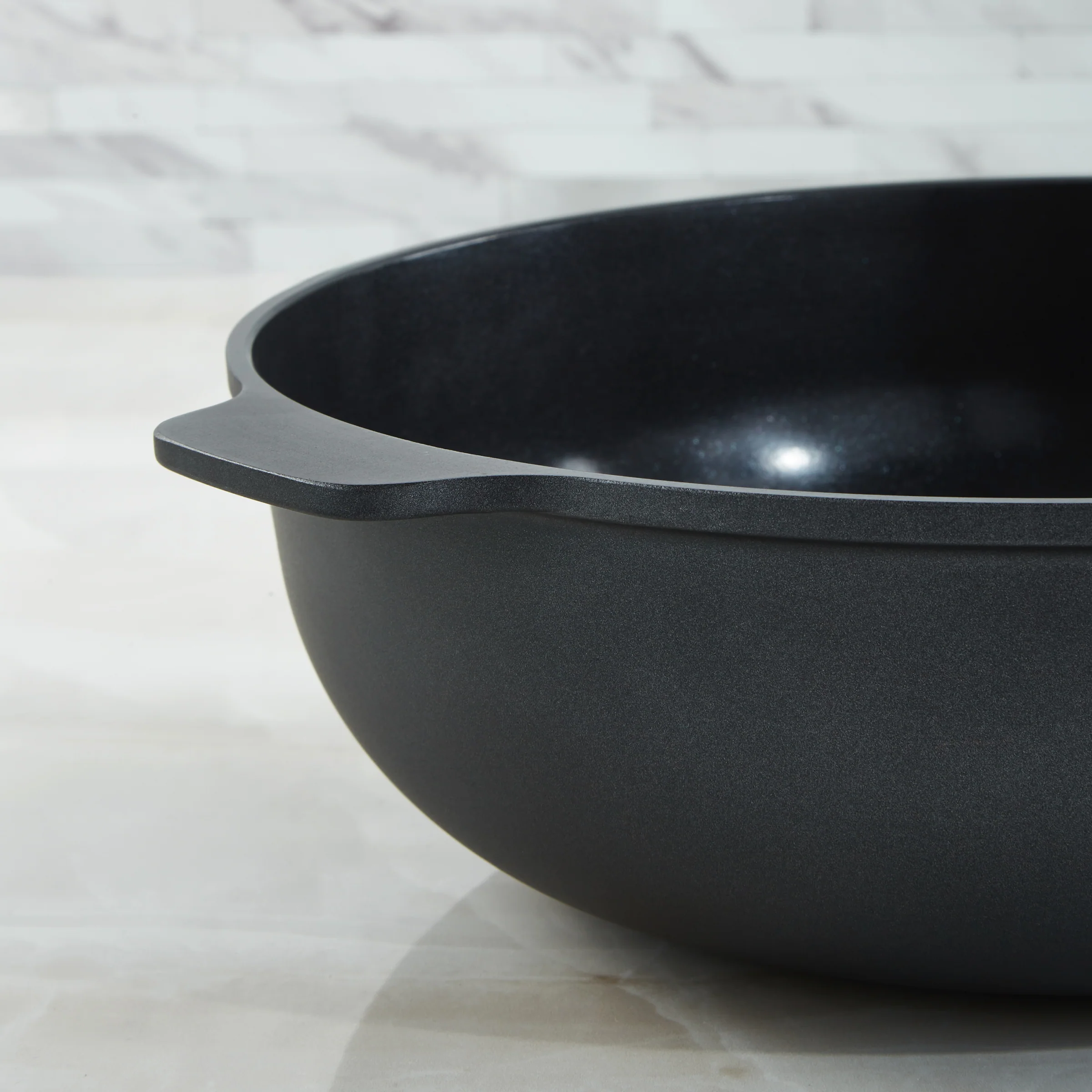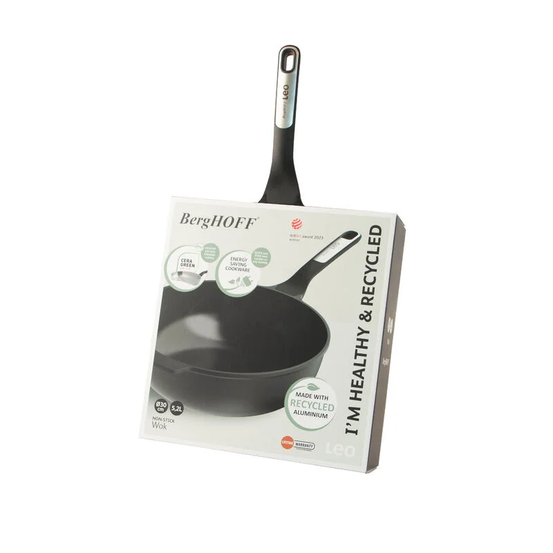 Create a crispy wok meal on the dinner table thanks to our 30 cm wok pan. The healthy ceramic CeraGreen non-stick coating allows you to cook with little to no oil and ensures easy food release and clean up. The recycled aluminium wok pan heats up quick and evenly and provides an even heat distribution on any kind of cooktop, including induction.