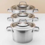 Composition 1 x covered saucepan 16cm (6.5″) – 1.60L (1.75qt); 1 x covered casserole 18cm (7″) – 2.30L (2.5qt); 1 x covered casserole 20cm (8″) – 3.10L (3.25qt); 1 x covered stockpot 24cm (9.5″) – 5.30L (5.5qt); 1 x covered 2-handle deep skillet 24cm (9.5″) – 2.70L (3qt)