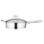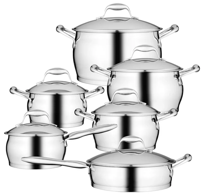 Including a saucepan, 3 casseroles, a stockpot and a deep skillet, all made of high-quality 18/10 stainless steel and equipped with a matching lid, this 12-piece cookware set provides any starter cook with a versatile collection of durable cooking essentials. Thanks to their round belly that allows for easy stirring and multilayered sandwich bottom which ensures a fast and even heat distribution, these pots and pan are a joy to cook with, no matter your cooking style.
