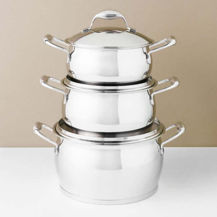 Composition | 1x covered saucepan – 16 cm (6.5″) – 1,8 l (2qt) 1x covered casserole – 16 cm (6.5″) – 1,8 l (2qt) 1x covered casserole – 18 cm (7″) – 2,5 l (2.5qt) 1x covered casserole – 20 cm (8″) – 3,9 l (4qt) 1x covered casserole – 24 cm (9.5″) – 6,4 l (6.75qt) 1x covered deep skillet – 24 cm (9.5″) – 3,0 l (3qt) |