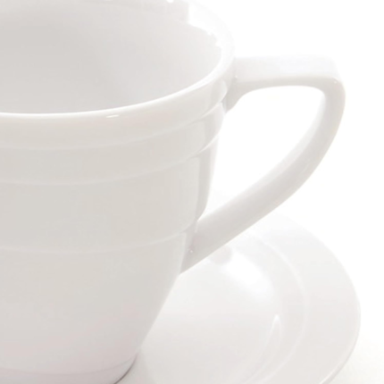 From a casual cup of tea to a formal lunch, with this teacup you’re sure to enjoy the perfect cuppa time and again. The classy teacup has a handle for easy sipping and comes with an accompanying saucer. Both are made from durable white porcelain that blends seamlessly with any décor and can easily go in the dishwasher once you’re done.