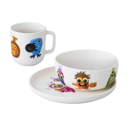 Featuring a playful MonsterChefz design, this 3-piece porcelain set will soon become your kids’ best friend at mealtime. The mug, plate and bowl are a perfect fit for small children's hands and are made from high-quality porcelain so they’ll easily guide your kids through countless of meals. On top of that, the entire set is microwave and dishwasher safe to make sure using and cleaning the 3 pieces is a breeze!