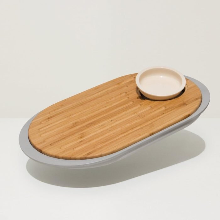 Web description | Two-sided bamboo tapas cutting board with tray |