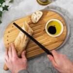 Catalogue description | Two-sided bamboo tapas cutting board with tray |