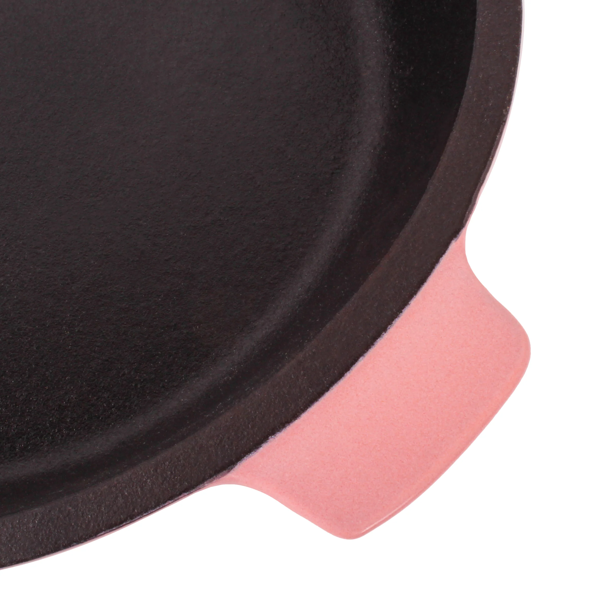 Pink Cast Iron Fry Pan will brighten up your kitchen and your cooking. Featuring a classic design, this piece will provide superior heat retention during food prep and cooking.