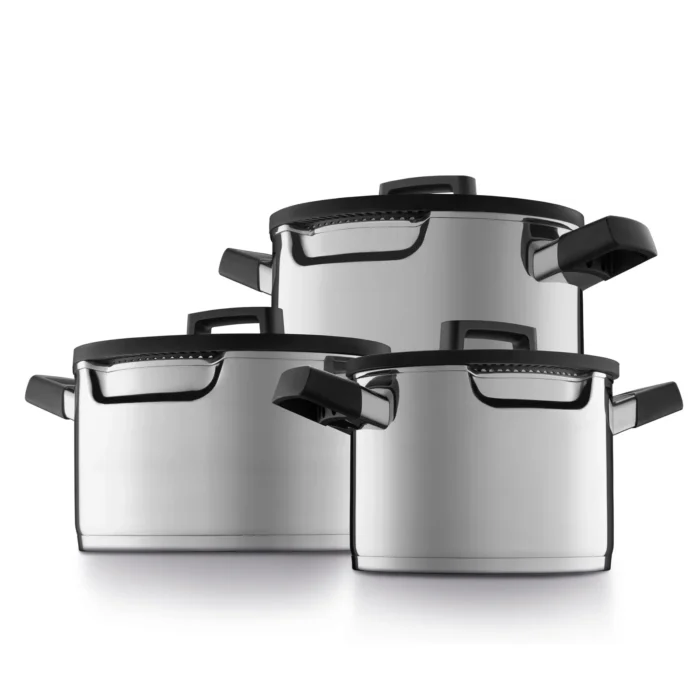 Composition | 1 x covered casserole 20cm (8″) 4,2 L (4.5qt) 1 x covered casserole 24cm (9.5″) 5,7 L (6qt) 1 x covered casserole 24cm (9.5″) 8.8 L (9.25qt) |