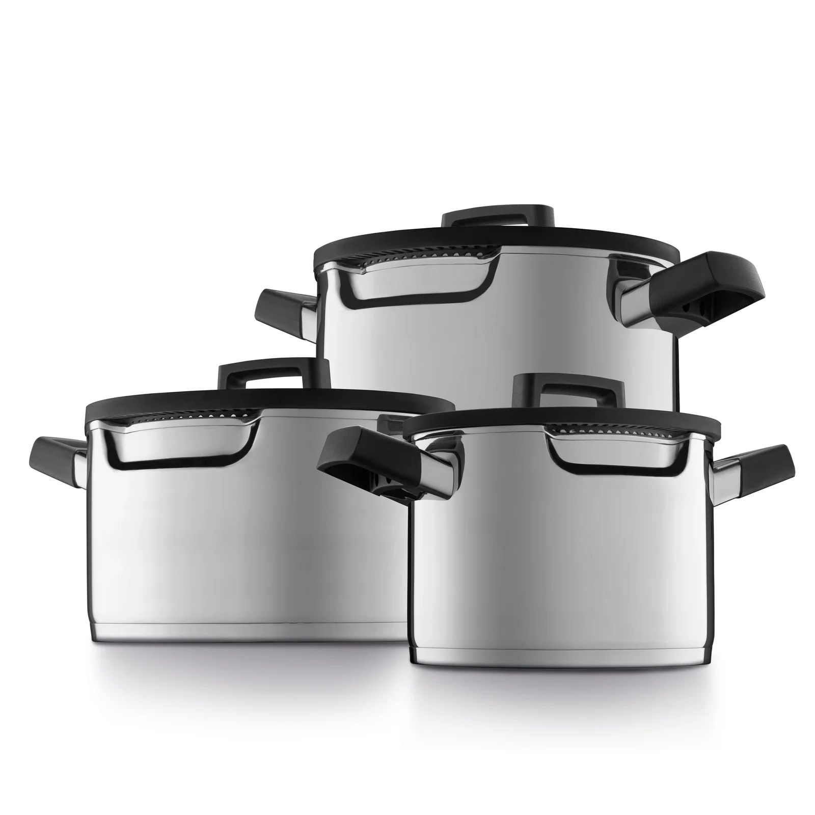 With this 6-pc cookware set you have the right casserole for every cooking challenge. These pots offer you the possibility to close off the pot by rotating the lid 180 degrees, on top of that the glass lid contains integrated air ducts for optimal steam extraction. All BergHOFF downdraft products are perfect for all cooktops, cooker hoods and downdraft exhaust systems.