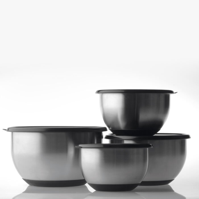 Composition | 1 x mixing bowl with lid – 16,00 cm (6.5″) 1 x mixing bowl with lid – 18,00 cm (7″) 1 x mixing bowl with lid – 20,00 cm (8″) 1 x mixing bowl with lid – 24,00 cm (9.5″) |