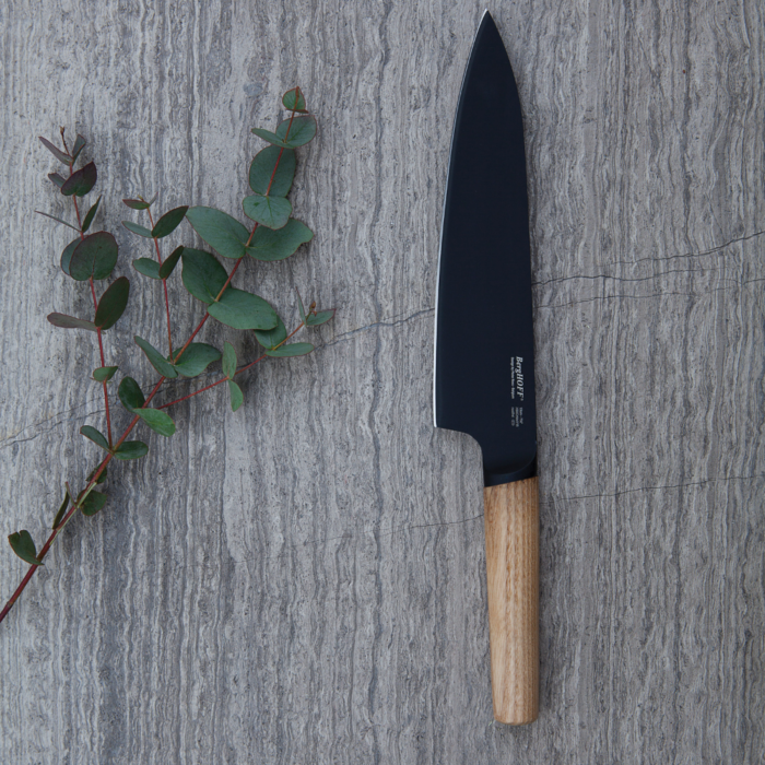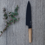 A chef’s knife is a must-have in any kitchen. Chop, mince or slice your ingredients in no time with this versatile black steel knife. The longer, wide blade allows you to slice precisely with a single stroke while the curved tip enables you to rock the knife on a cutting board for easy mincing. The contrasting ash wood handle ensures a comfortable grip and gives the knife a natural touch.