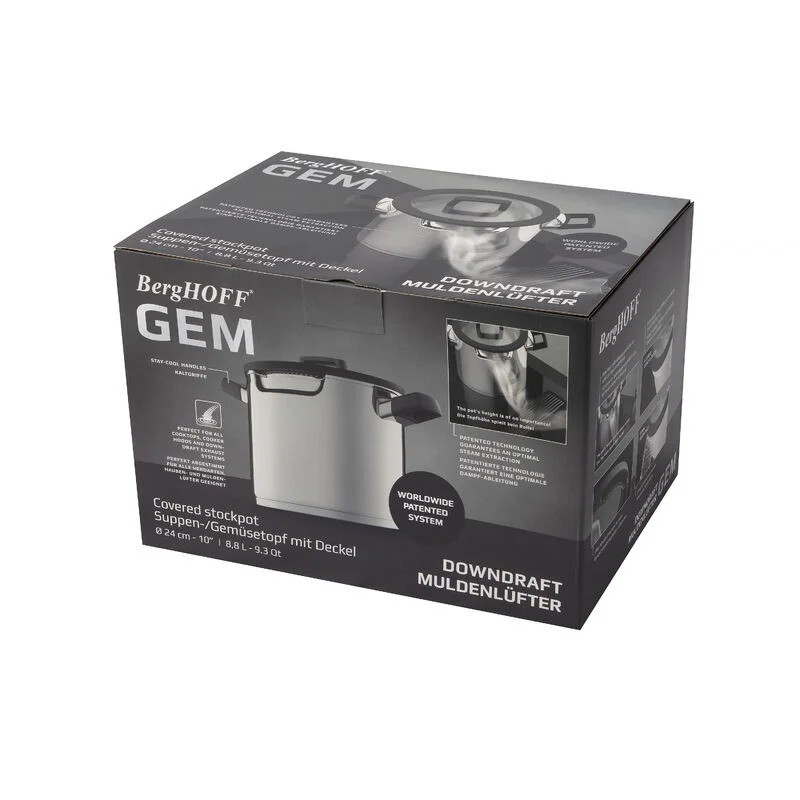 Whether you’re making a one-pot dish for a family of four or a batch of soup that will last a couple of days, with this covered stockpot you’ll have it ready in no time. With this pot your have the possibility to close off the glass lid by rotating it 180 degrees, on top of that the glass lid contains integrated air ducts for optimal steam extraction. All BergHOFF downdraft products are perfect for all cooktops, cooker hoods and downdraft exhaust systems.