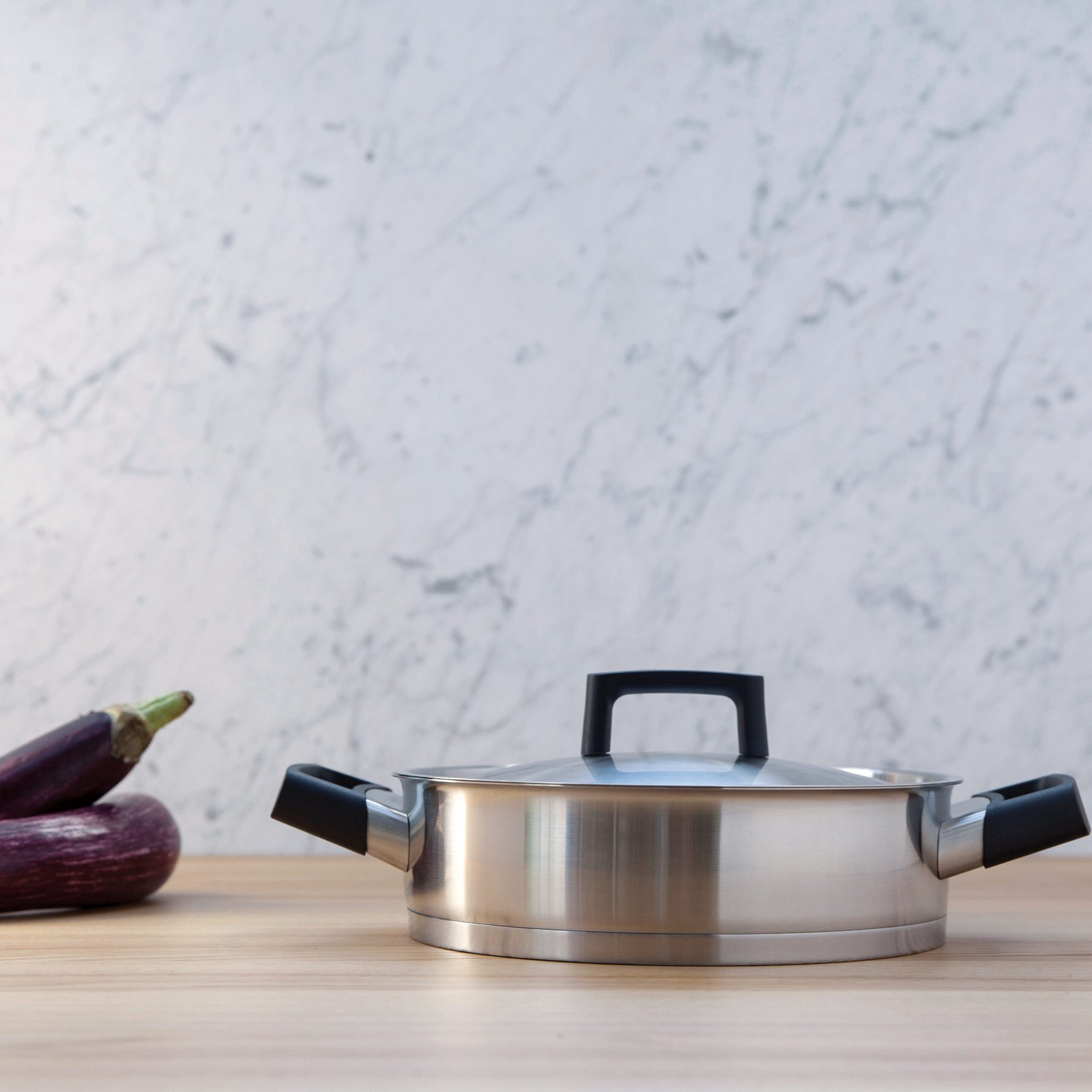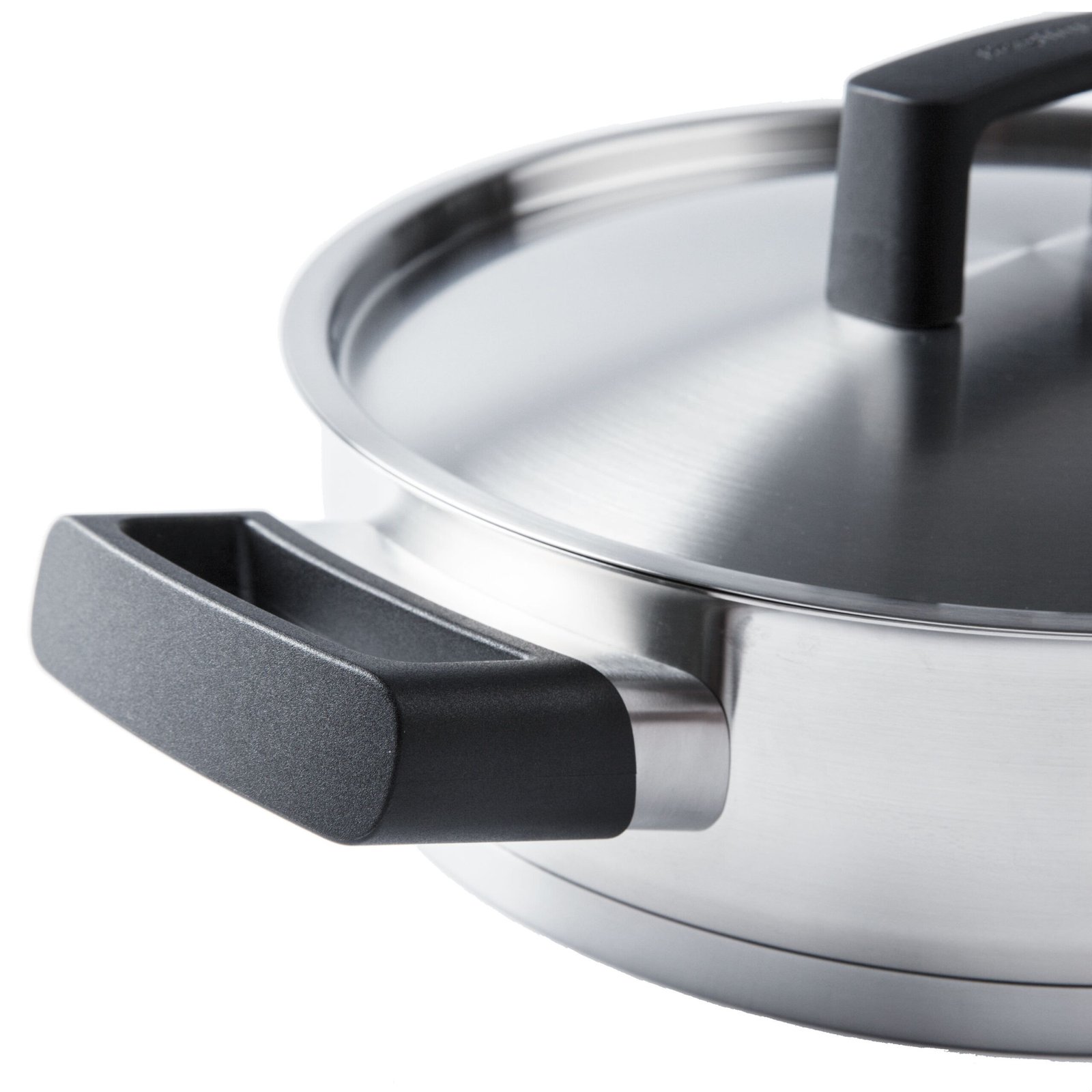 Low-fat searing, sautéing, frying, simmering, roasting, … whatever you’ve got planned, this deep skillet is ideal for family-size portions. It comes with a matching stainless steel lid that seals the pot, preventing moisture and juices from escaping. The cold grip handles add to the user comfort of this durable deep skillet that can be used on any hob.