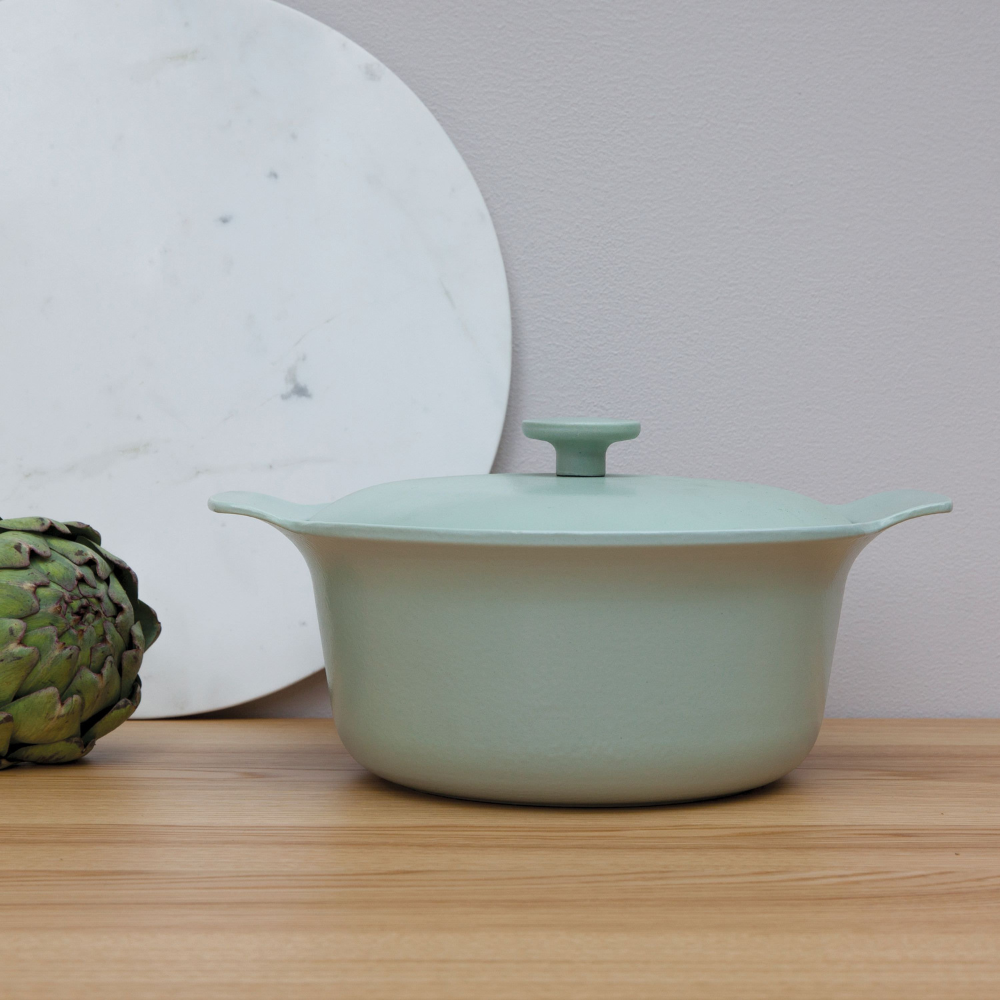 A true kitchen classic, this cast iron casserole is made to last. Use it on your hob to sear your meat, pop it in the oven to let your stew simmer and serve the stylish pot at the table. The condensation bumps in the lid’s interior help to preserve the moisture and keep your meat juicy while the enamelled interior ensures an easy clean-up.