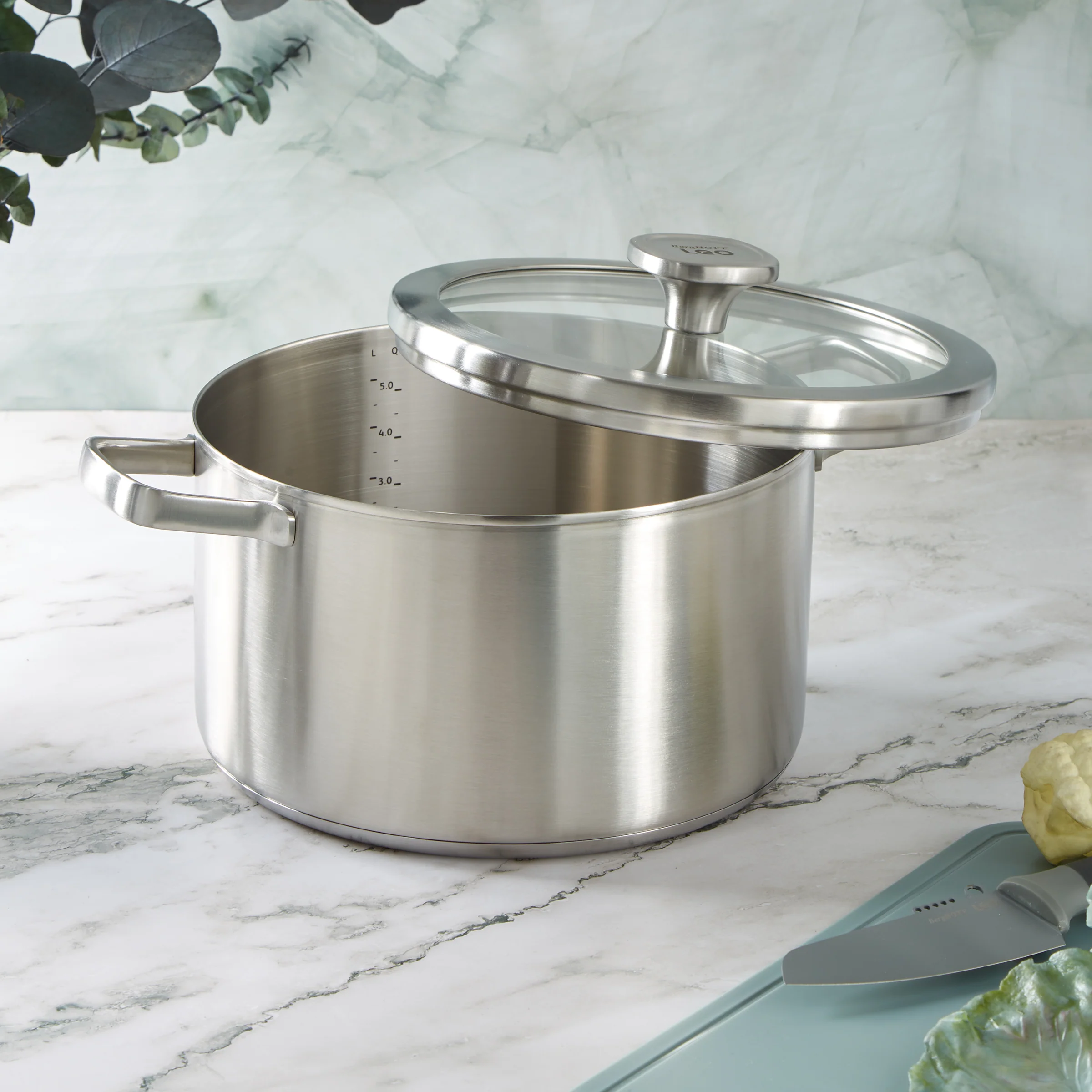 | Unique features | Inside capacity marks Capsuled impact bonded base conducts heat fast and evenly for energy-efficient cooking Made with recycled stainless steel Ovenproof up to 250°C / 482°F (Cover: 180°C / 356°F) |