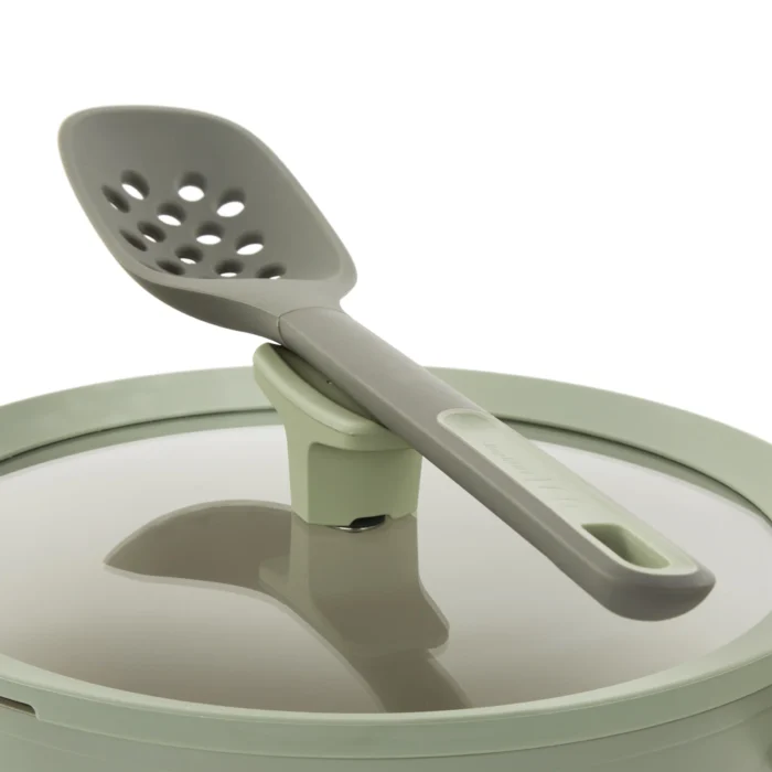 From pasta to peas, the Leo skimmer with silicone body is the perfect tool to skim and strain liquid from your pots and pans without scratching the delicate surface of your cookware, The soft-touch rubber handle ensures a comfortable grip and has a convenient loop so you can hang the skimmer from a hook alongside the other Leo utensils for easy access,