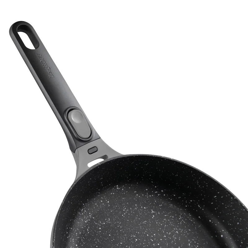 Offering a fast and even heat distribution and a non-stick coating that allows for low-fat cooking, this 28 cm frying pan is the perfect partner for all kinds of fry ups. It’s suitable for every type of stovetop, including induction, and comes with an easily detachable handle that you can snap off with the flick of a wrist to use the pan in the oven or save valuable kitchen storage space.