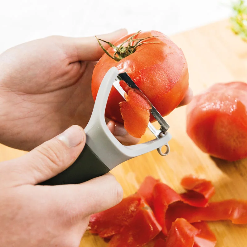 Peaches, plums, tomatoes, zucchinis and more, you’ll easily tackle those tough-skinned fruits and vegetables with this serrated Y-peeler. The sharp stainless steel blade removes the skins effortlessly while the ergonomic soft-touch handle is a pleasure to hold and allows for a secure grip.
