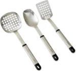 Flipping pancakes, burgers or fish is a piece of cake with this stainless steel spatula. The wide head turns your foods efficiently and transfers them neatly without breakage while fats and liquids drain easily through the perforations. On top of that, the spatula’s long handle makes sure your hand is kept well clear of the heat source but still provides a comfortable grip for optimal control and a hanging loop for easy storage.