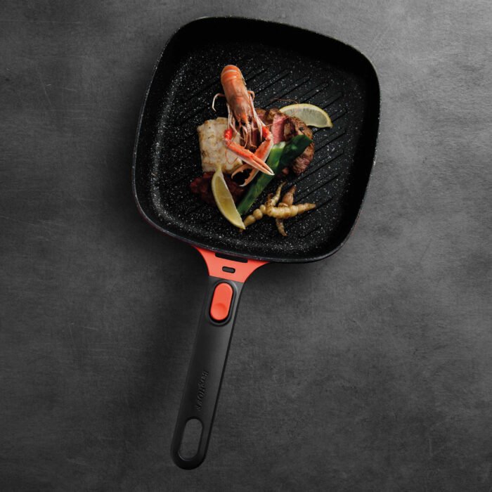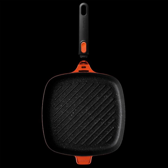 Web description | Square grill pan with detachable handle orange 28 cm |