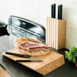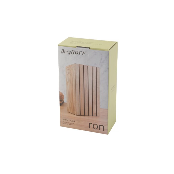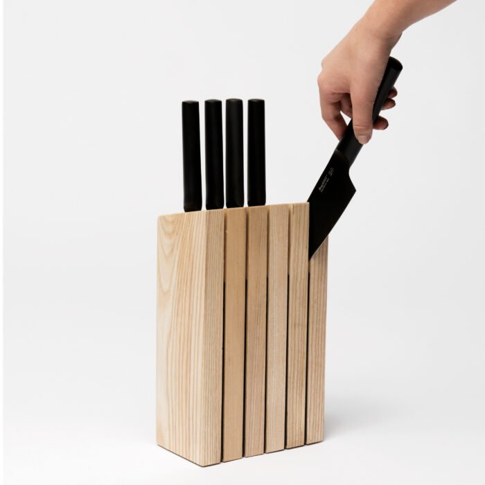 Want to give a stylish touch to your countertop? This ash wood knife block looks great in any kitchen and safely stores up to five knives. The angled design helps to protect the blades while the large, well-distanced slots ensure easy removal of each knife. The knife block comes with an anti-skid base for extra stability.